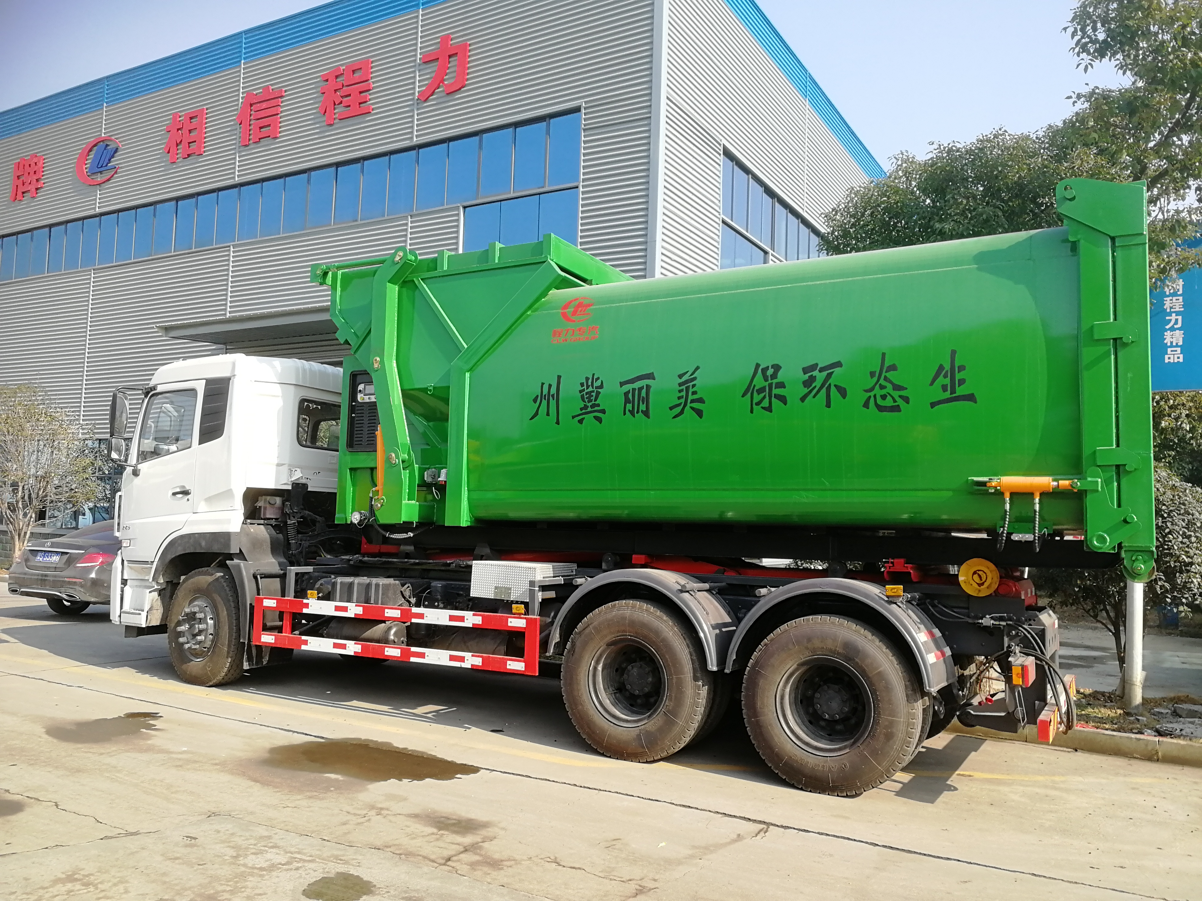 湖北程力東風天龍后雙橋移動垃圾站(車廂可卸式垃圾車勾臂垃圾車)介紹