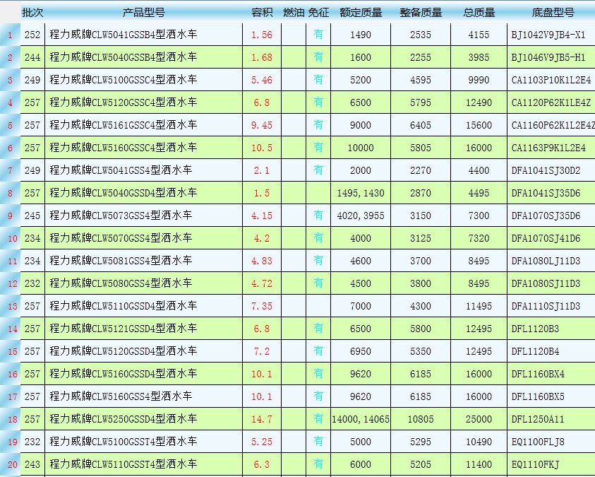 湖北程力國四灑水車公告有哪些型號,湖北程力國四灑水車產(chǎn)品型號大全。湖北程力積極與國家政策接軌,制造環(huán)保,為國家人民做貢獻,盡一份企業(yè)責任。廠家直銷電話:0722-7029866.18672222488王經(jīng)理。