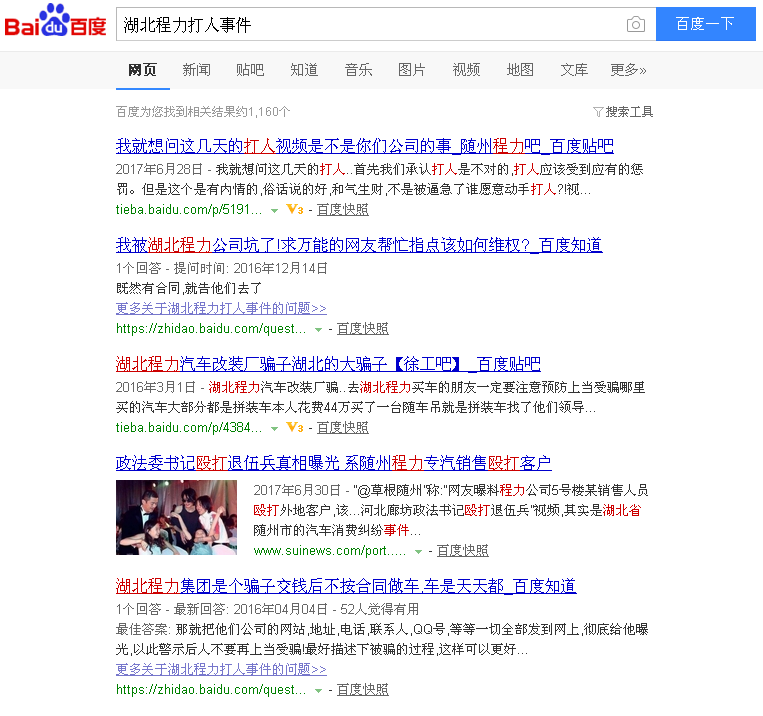 2018年1月29日,湖北程力汽車集團股份有限公司對2017年6月20日,關于對余朝陽打人事件(視頻)的調查處理做出了通報。  ![]() 我們來看看,相關事件目前在網上流傳的視頻截圖  ![]() 再看看,關于事件被某搜索引擎收錄的條數  ![]() 遇到糾紛,請雙方多協調解決且勿動手,同時希望此事件平息下去!請勿造謠并傳播。共建中國專汽之都—隨州榮譽稱號 |