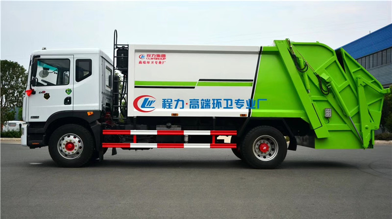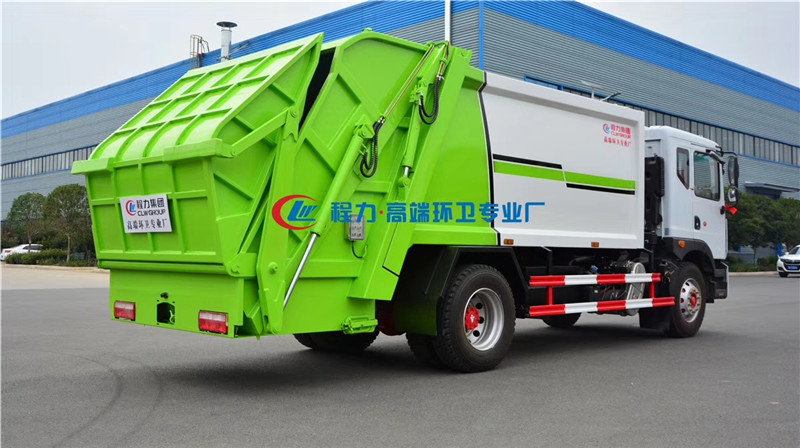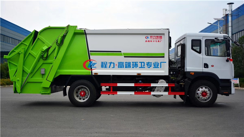 4、智能操作系統(tǒng)采用西門子PLC一鍵循環(huán),駕駛室內(nèi)與車外均有電控操作盒,后尾部左右各帶一個操作盒。駕駛室室內(nèi)卸料時操作,外部裝料時操作,另帶有一套手動應(yīng)急操作,同時設(shè)有電子自動油門,不在需要人工加減油門來調(diào)節(jié)工作速度,一個司機就可以完成全部操作,也可減少或避免野蠻加油而導致液壓系統(tǒng)故障。 湖北程力汽車壓縮垃圾車國六東風D9壓縮垃圾車多方位圖片展示: