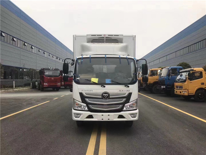 湖北程力福田歐馬可藍(lán)牌冷藏車 為了區(qū)別運(yùn)輸物品的冷凍,冷藏,保溫,恒溫類型,交通部通過(guò)命名冷廂上的A、B、C、D、E、F、H、F這些字母,將冷藏車分為8個(gè)等級(jí)。