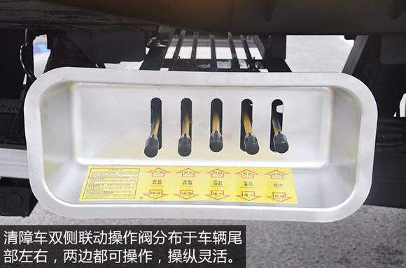 江淮平板一拖二清障車雙側聯動操作閥分布于車輛尾部左右,兩邊都可操作,操縱靈活,視野范圍廣,減少了后期道路使用中的局限性。