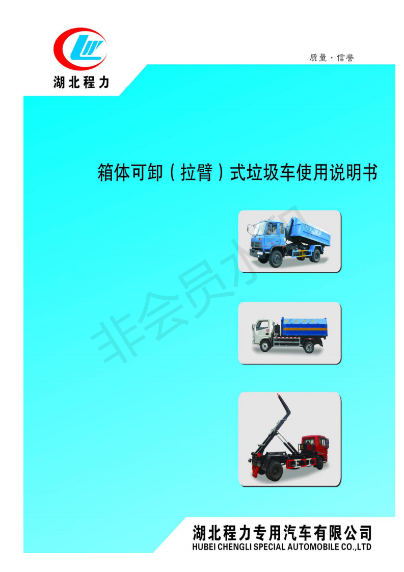 湖北程力車廂可卸式勾臂垃圾車使用說明書