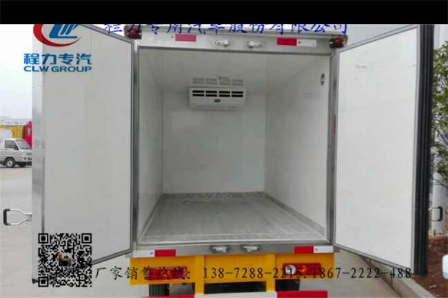 廂體內部有效尺寸:長2.6米×寬1.46米×高1.47米,廂體蒙皮采用內外玻璃鋼,隨客戶選擇內置槽鋼焊接骨架或者玻璃纖維超輕高強度骨架,填充8cm聚氨酯保溫層,不銹鋼包角,不銹鋼門框,不銹鋼門鎖件,防滑花紋鋁底板,配后雙開門,-5~-10度制冷機組