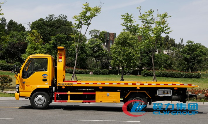 湖北程力國六五十鈴黃牌一拖二清障車(5.6米板長)程力威牌CLW5070TQZQ6型清障車廠家配置: 湖北程力五十鈴黃牌一拖二清障車配置: 采用五十鈴單排可前翻駕駛室,五十鈴120馬力發動機,5檔箱,油剎,帶ABS,冷暖空調,電動玻璃,中控鎖,7.00R16鋼絲胎。 4噸上裝4噸卷揚,25米鋼絲繩,雙側聯動操作,有花紋板及壓制板可選,配輔助小車一套,四根捆綁器。