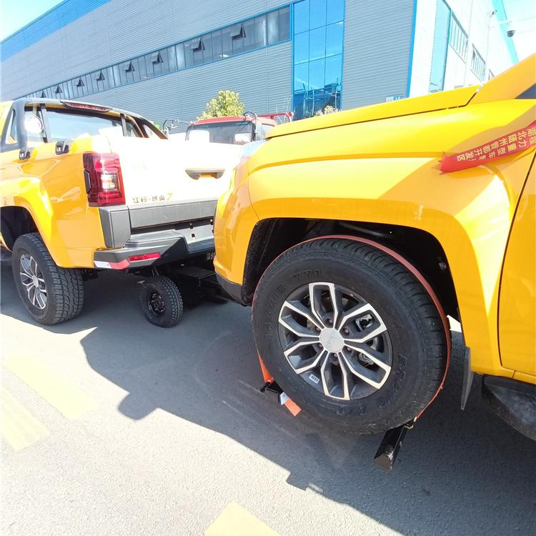 湖北程力國六江鈴域虎7皮卡清障車四驅(qū)皮卡拖車程力牌CL5030TQZ6ZK型清障車廠家配置: 地庫救援皮卡清障車,此款車型有公告,可正常上戶。該車采用江鈴域虎皮卡底盤改裝,全自動夾緊裝置,因為車身短、高度低,特別適合地下車庫的車輛救援。 江鈴域虎7皮卡手動擋皮卡清障車配置:選用國六域虎7皮卡底盤,國六B級排放標(biāo)準(zhǔn)福特發(fā)動機(jī)141馬力,6擋變速箱,中冷增壓柴油發(fā)動機(jī),分時高低速四驅(qū),3085軸距,冷暖空調(diào),真皮座椅,原廠倒車影響,ABS,265,70R16真空越野胎,多功能方向盤,電動玻璃遙控一鍵啟動功能。前后碟剎,鋁合金輪轂,腳踏板2.0T排量,貨箱噴涂。 江鈴域虎7皮卡手動擋皮卡清障車上裝配我廠最新款 第五代專利 產(chǎn)品萬向輔助輪,配無線遙控器真正的全自動抱胎,備用線按鈕,鋼板加強(qiáng),3噸電動液壓單元,雙油缸托3節(jié)伸縮托臂,進(jìn)口部件,進(jìn)口油封,全自動抱胎,贈萬向輔助小車2個,4條綁帶,贈送前配重。 第五代上裝~帶萬向輔助輪后托臂,依據(jù)力學(xué)原理,優(yōu)化設(shè)計,根據(jù)拖車的重量遙控調(diào)節(jié)輔助輪的相應(yīng)高度,車速輕松跑;規(guī)避了已經(jīng)淘汰的第三代國定輔助輪拖臂因不能調(diào)節(jié)摩擦力大速度受限帶來的一系列問題(限速、費(fèi)油、摩擦大引起的爆胎。 湖北程力國六江鈴域虎7皮卡清障車四驅(qū)皮卡拖車程力牌CL5030TQZ6ZK型清障車圖片價格: