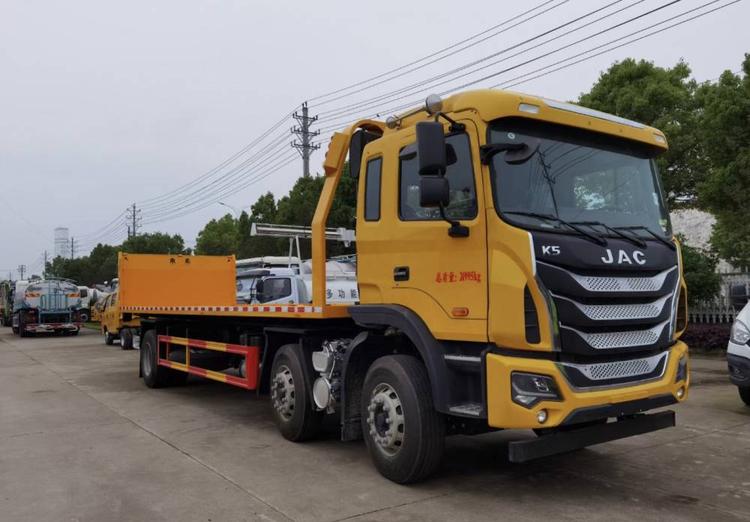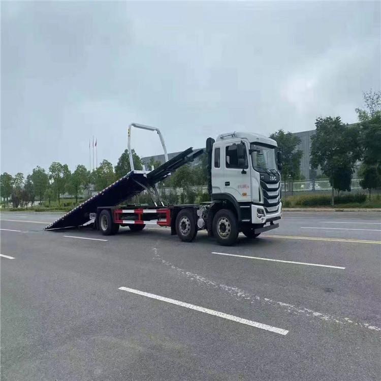 江淮K5小三軸,錫柴290馬力,法士特8檔變速箱 11.00輪胎,280大梁,空調(diào),ABS,行駛記錄儀,電動(dòng)玻璃升降,電動(dòng)翻轉(zhuǎn),氣囊座椅。 12噸上裝,12噸后托臂,重心低,受力平均,平板尺寸9.6米,平板寬2.55米,10噸液壓卷揚(yáng)。 湖北程力國六江淮K5小三軸平板清障車(平板長度9.6米)程力牌CL5250TQZH6ZQ型清障車圖片價(jià)格: